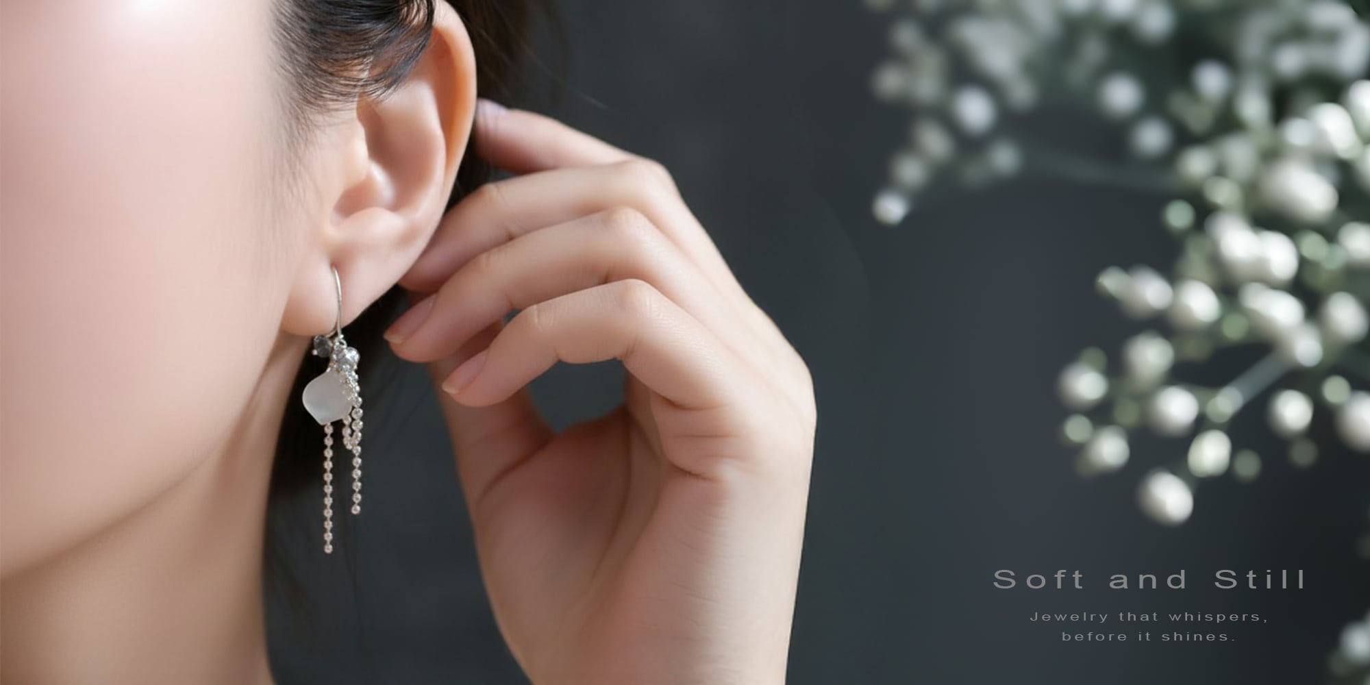 Silver925のボールチェーンにやわらかな天然石を添えた、静かに揺れるリボンモチーフのコレクション。