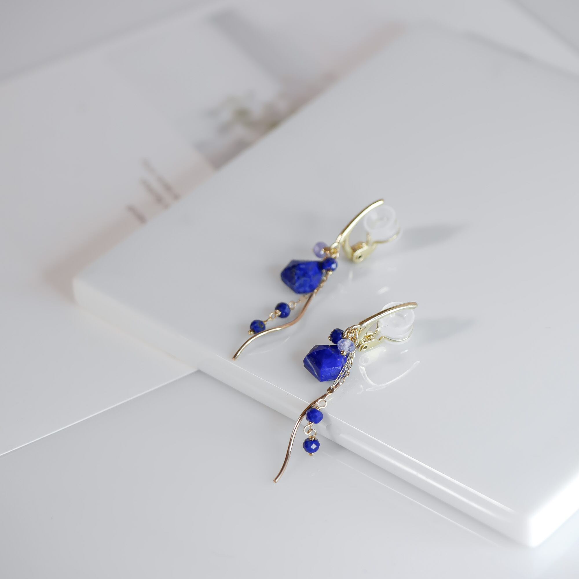 ラピスラズリ K10×GF ウェーブチェーン ソフトタッチイヤリング