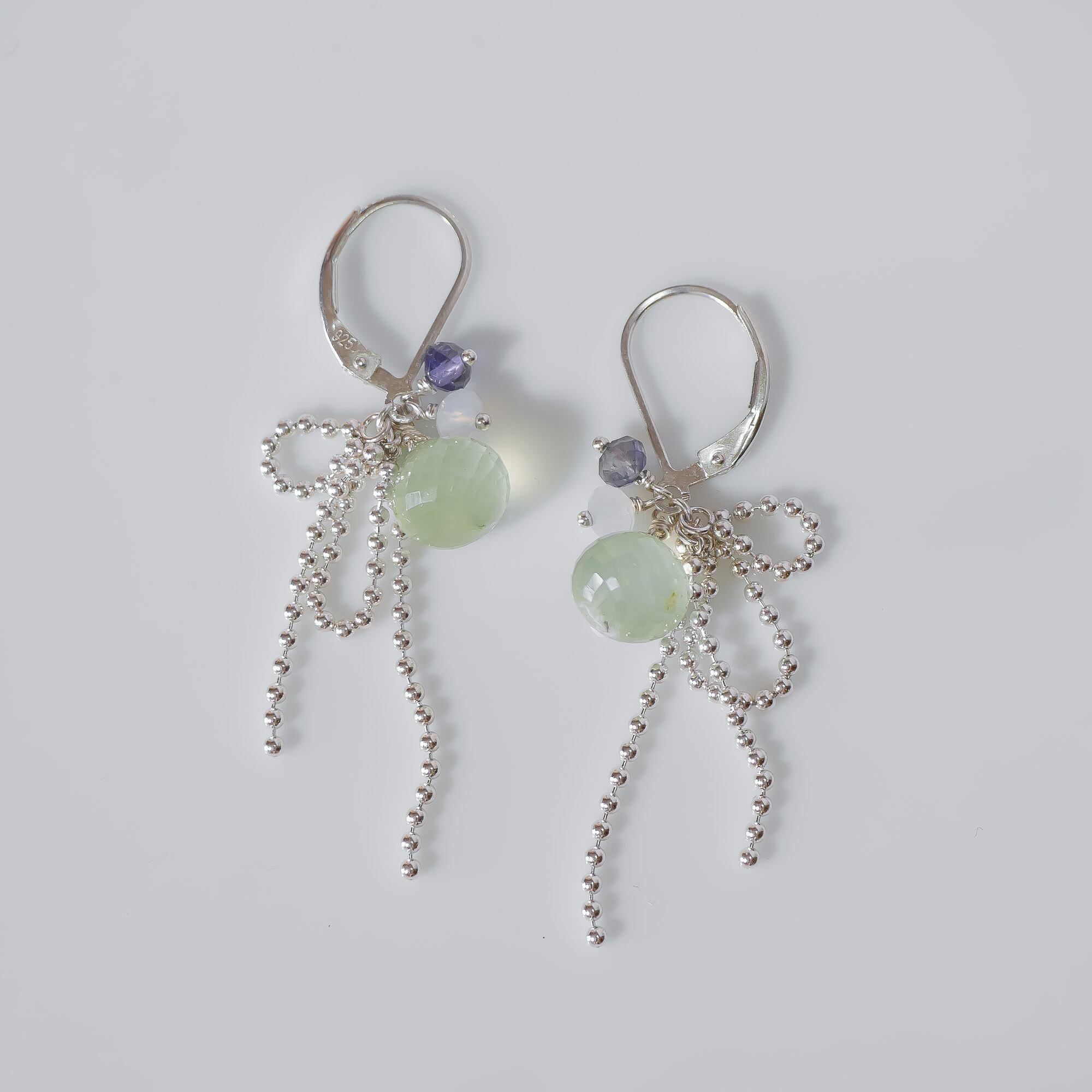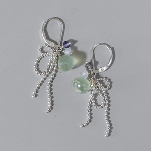 Silver925 プレナイトのリボンピアス[1088GR]
