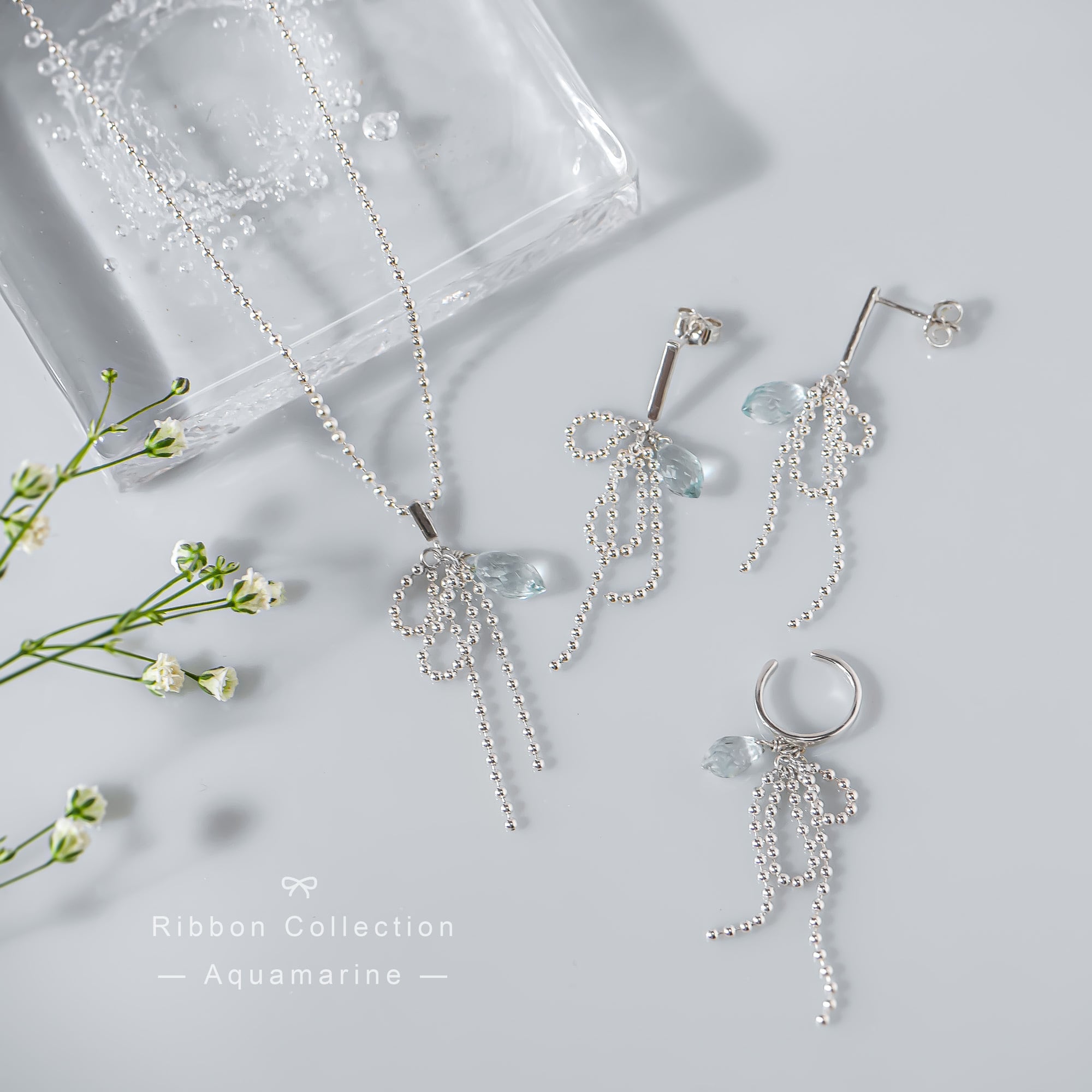 Silver925 アクアマリンのRibbonイヤーカフ[1089C]