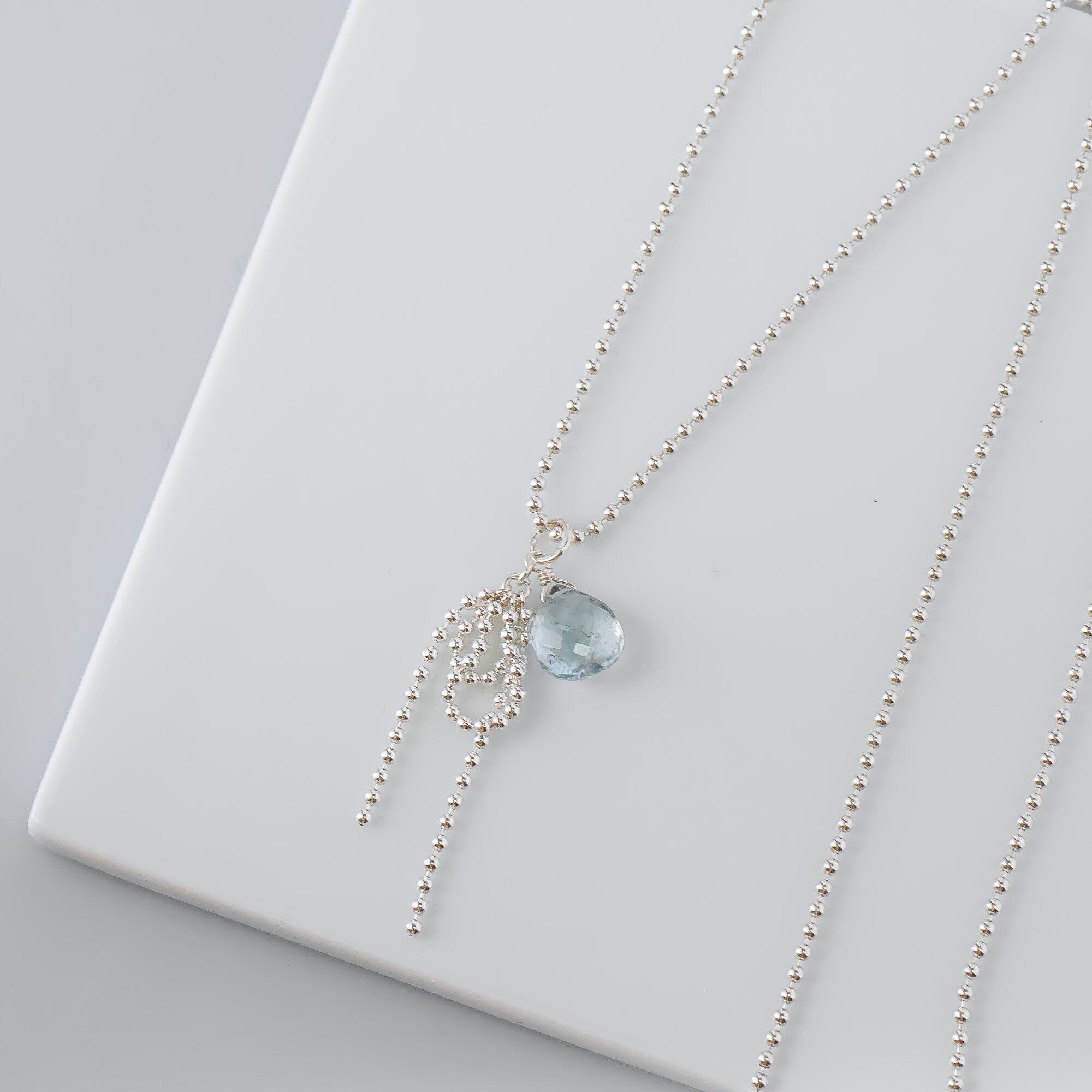 スターリングシルバーのボールチェーンをリボンモチーフに仕立て、