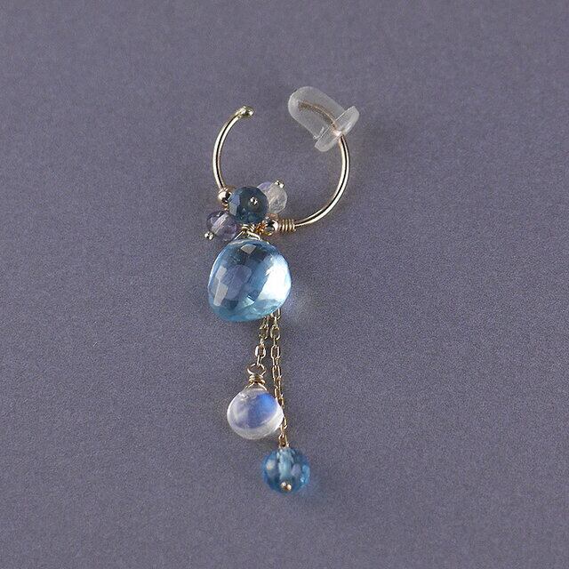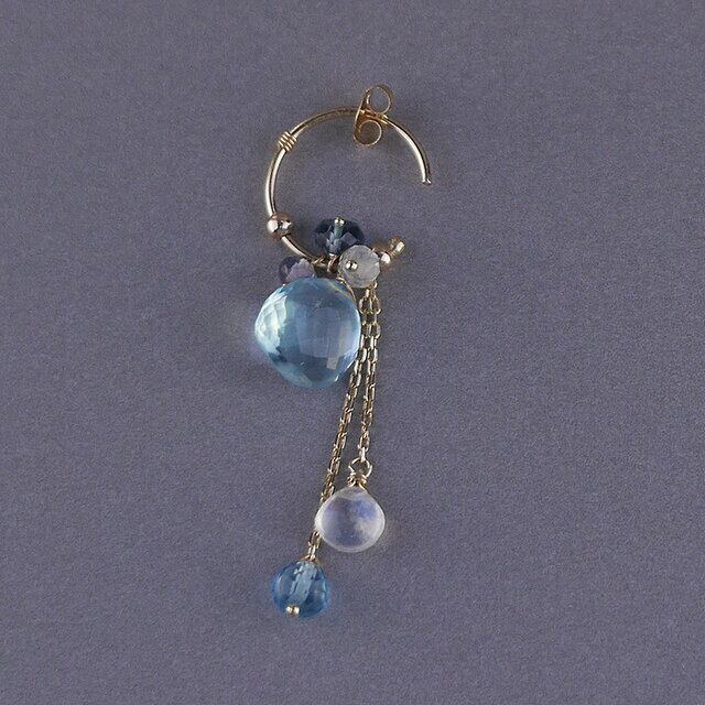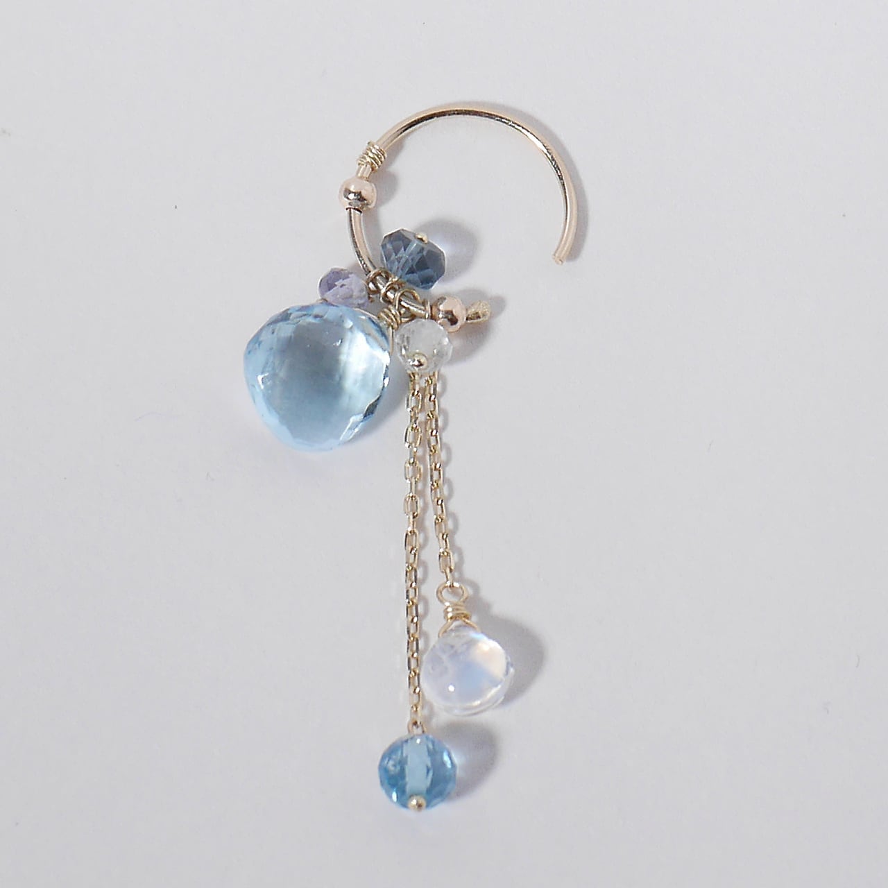 K10 極上カット・ブルートパーズのフープピアス(イヤーカフ)片耳