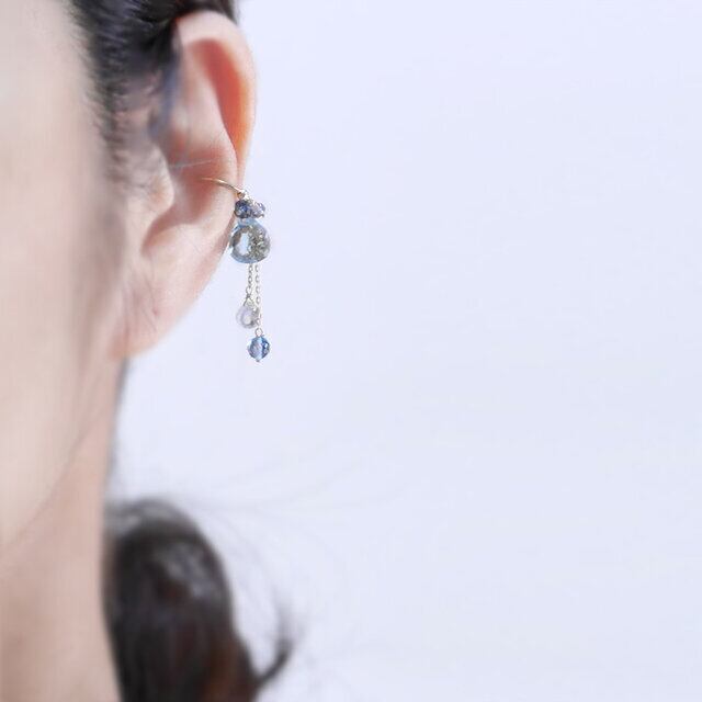 イヤーカフとしてお使いいただく際、石の並びが逆になります、ストッパーワイヤーコイルを外していただくとチャームの取り外しが可能ですので石の順番を逆にしていただくことも可能です。