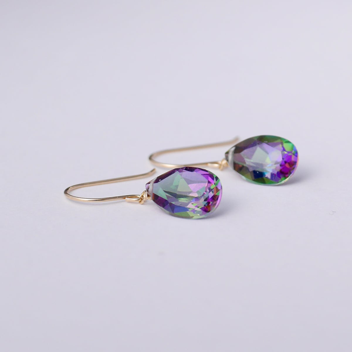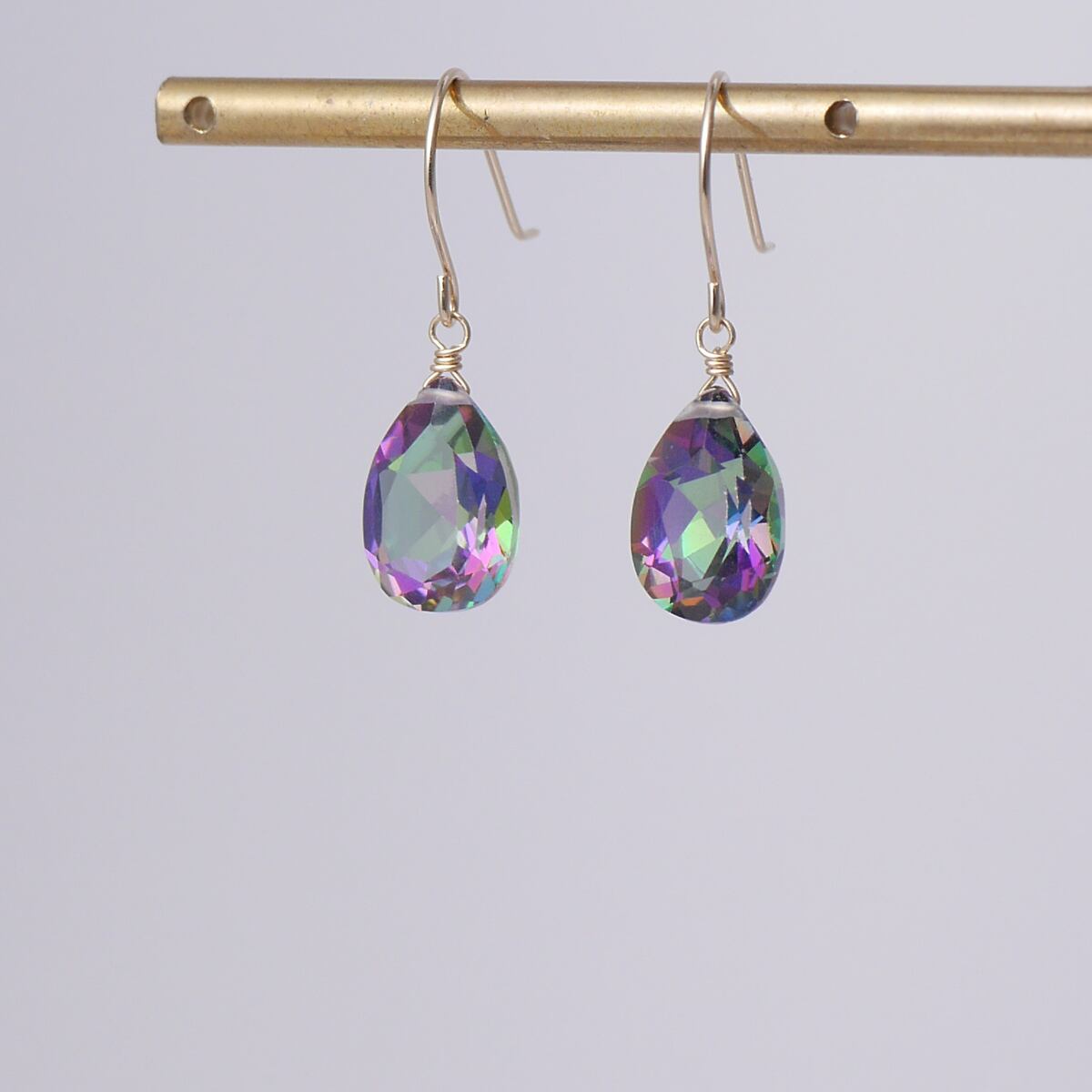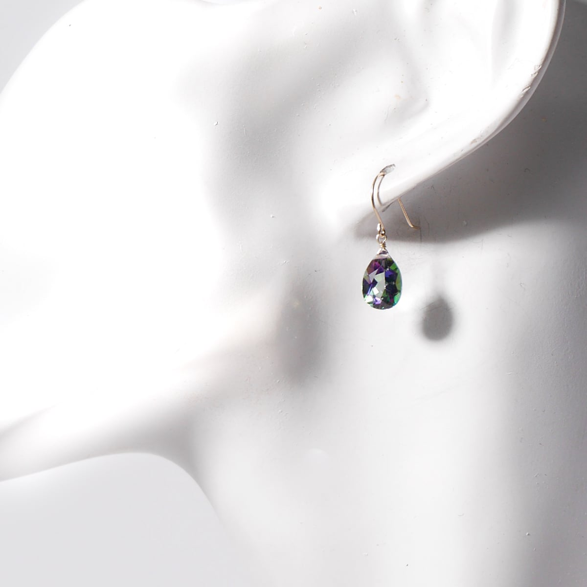 美しい色味の最上級ミスティークトパーズ、ペアシェイプファセットカットのK10ピアス